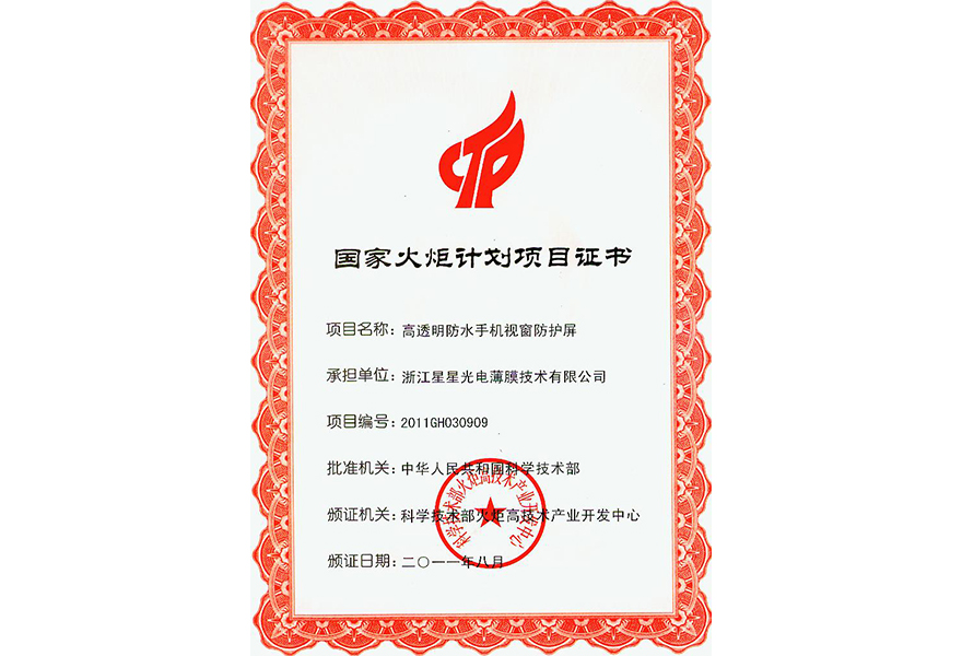 11.2.1-18國(guó)家火炬計(jì)劃項(xiàng)目證書(shū)201108