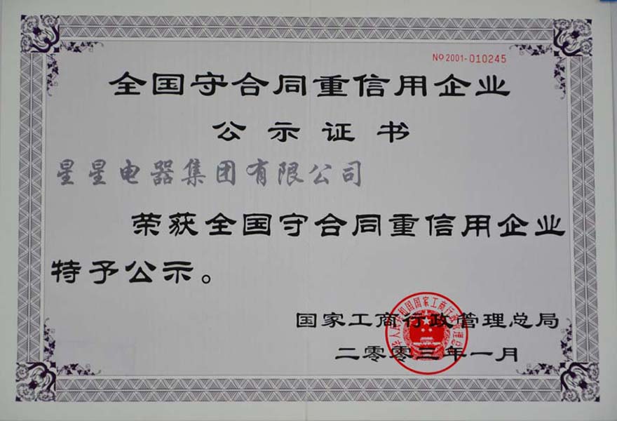 2003年1月 全國(guó)守合同重信用企業(yè)