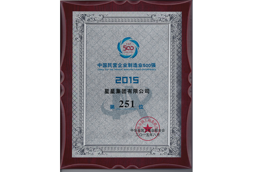 2015.08 中國(guó)民營(yíng)企業(yè)制造業(yè)500強(qiáng) (第251位)