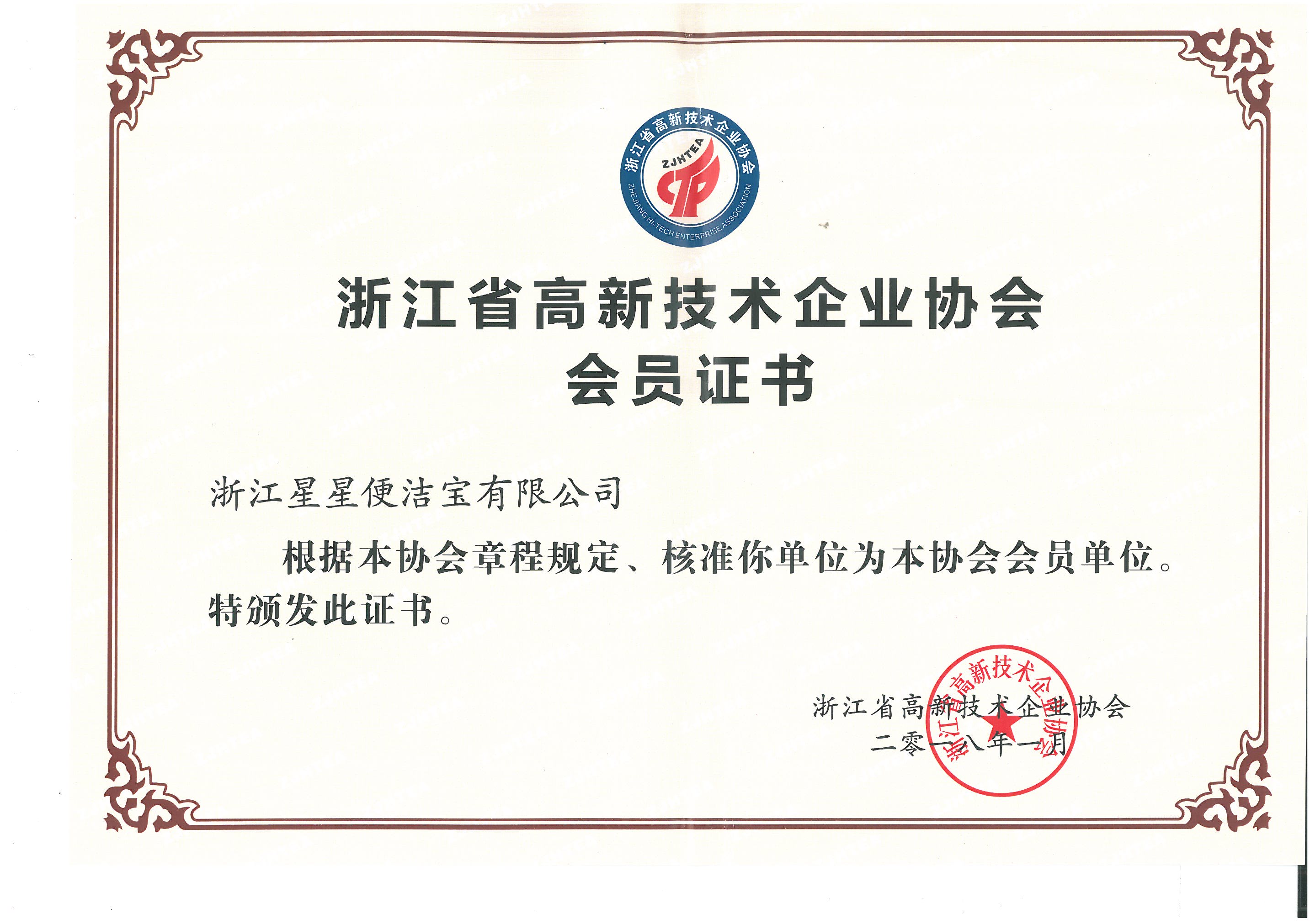 2018年浙江省高新技術(shù)企業(yè)協(xié)會(huì)會(huì)員證書