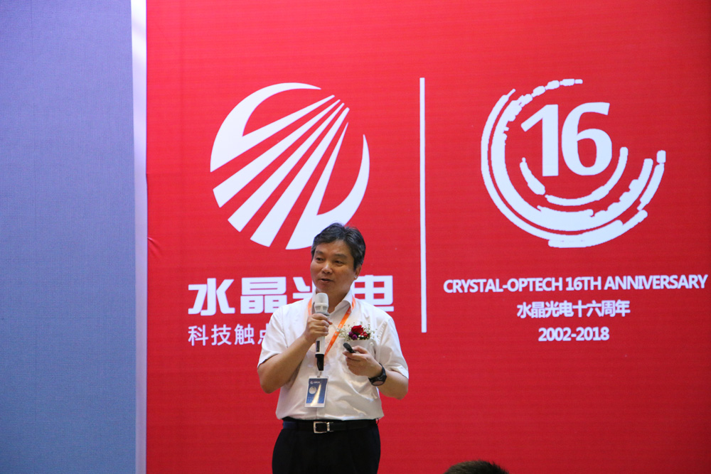2018年8月2日,水晶光電迎來了16周年生日,當(dāng)天上午,他們在綜合樓三樓舉行2018年忠誠員工入譜表彰儀式暨水晶商學(xué)院講座及“晶才計(jì)劃”啟動(dòng)儀式。董事長林敏,董事、副總經(jīng)理盛永江等領(lǐng)導(dǎo)班子以及公司各職能中心和事業(yè)部、分子公司的領(lǐng)導(dǎo)和員工代表參加了此次活動(dòng)。活動(dòng)期間,董事長林敏作了題為《水晶二次發(fā)展新格局》的專題講座,深度闡述了公司未來發(fā)展思路,為公司的下一階段發(fā)展指明了更加清晰的方向。