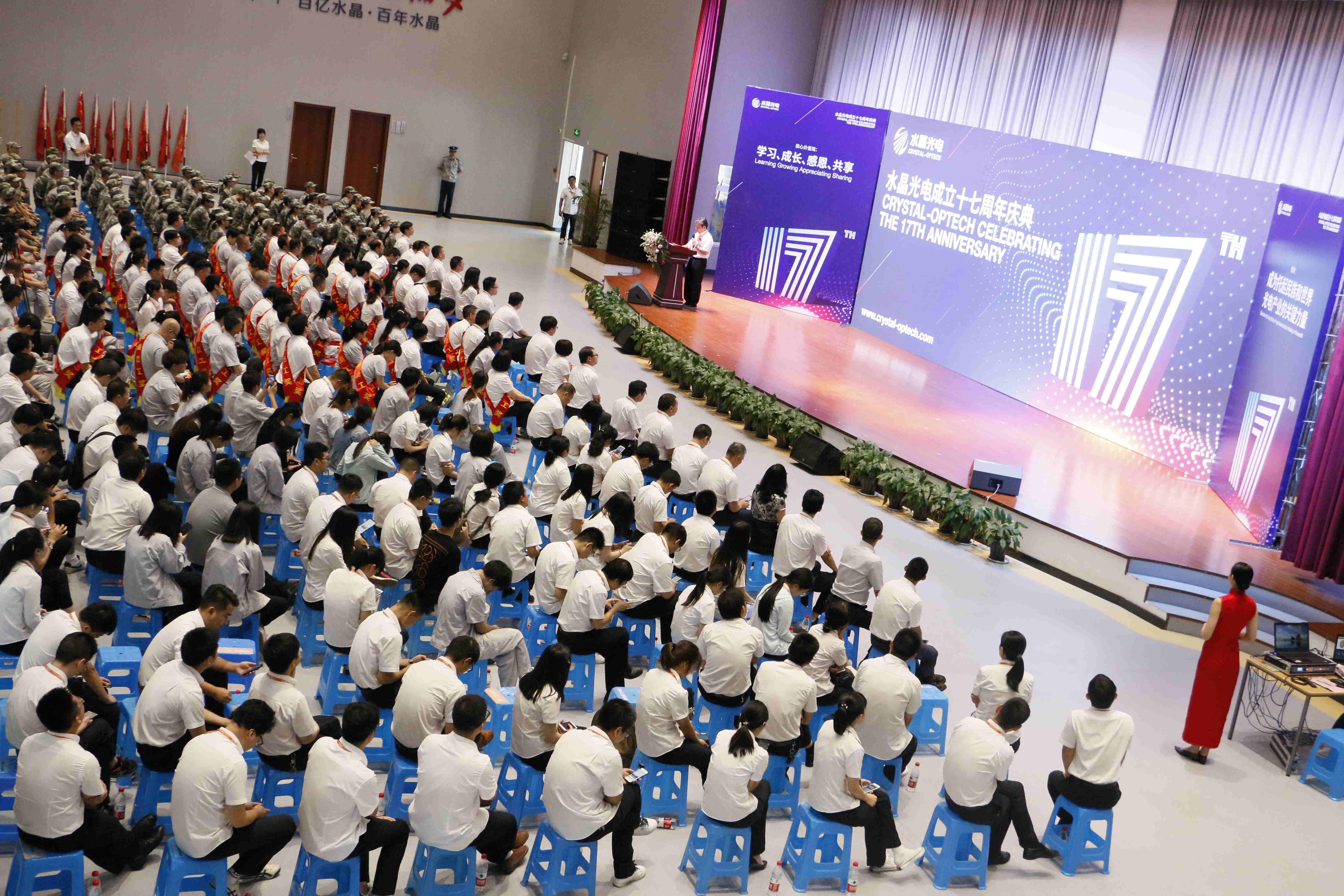 8月2日,公司在綜合樓三樓舉行了水晶光電成立十七周年慶典。公司董事長林敏,董事、總經(jīng)理王震宇等領(lǐng)導班子以及公司各職能中心和事業(yè)部、分子公司的領(lǐng)導和員工代表參加了此次活動。董事會辦公室主任、水晶商學院執(zhí)行院長印鋒主持大會。