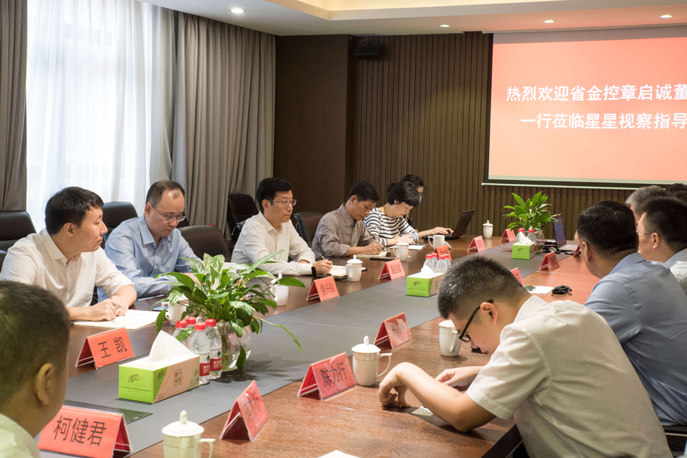 9月23日,省財(cái)政廳黨組成員,省金控公司黨委書記、董事長章啟誠一行走訪調(diào)研星星冷鏈數(shù)字化轉(zhuǎn)型實(shí)踐成效,臺(tái)州市財(cái)政局黨組書記、局長陳曦、省財(cái)政廳企業(yè)處處長王林堯、省金控相關(guān)部門及子公司負(fù)責(zé)人陪同調(diào)研,星星集團(tuán)董事長葉仙玉,上海譜潤股權(quán)投資管理有限公司董事長、星星冷鏈董事周林林,星星集團(tuán)總裁蔣亦標(biāo),星星冷鏈總經(jīng)理?xiàng)钗挠碌葻崆榻哟1敬握{(diào)研是根據(jù)省財(cái)政廳開展大調(diào)研活動(dòng)的安排,深入了解企業(yè)當(dāng)前經(jīng)營情況、未來發(fā)展設(shè)想,聽取企業(yè)對產(chǎn)業(yè)政策、財(cái)政政策方面的意見建議。