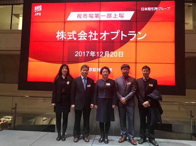 星星旗下浙江水晶光電科技股份有限公司參股子公司日本光馳于2017年12月20日在東京證券交易所上市交易,股票代碼為“6235”。臺(tái)州市椒江區(qū)委副書記、區(qū)長(zhǎng)楊玲玲代表臺(tái)州市椒江區(qū)政府,水晶光電董事長(zhǎng)林敏、董事兼副總經(jīng)理盛永江、財(cái)務(wù)總監(jiān)鄭萍、董事會(huì)高級(jí)顧問羅幸福代表水晶光電,與日本光馳孫大雄會(huì)長(zhǎng),林為平社長(zhǎng)等人共同出席了日本光馳的上市儀式。